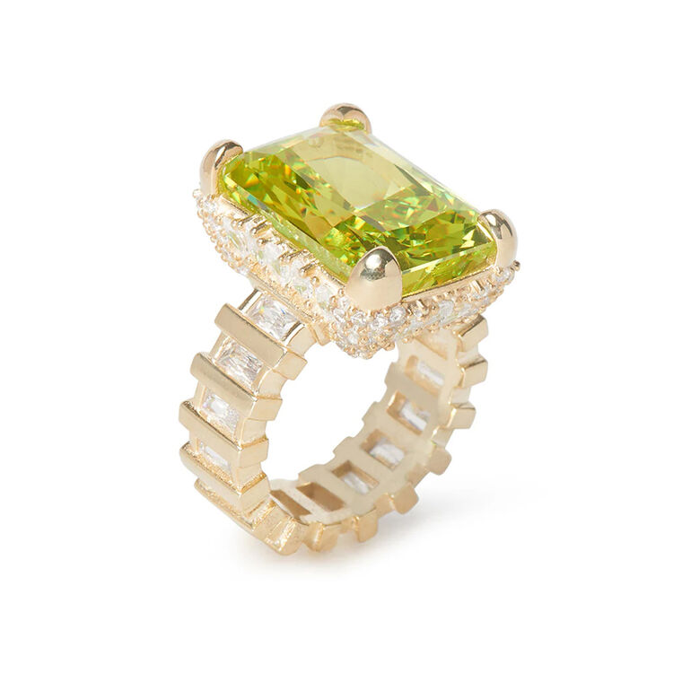 Elegant fireworks are what you get from this gorgeous statement ring. Collegiate inspired, this cocktail ring comes in a variety of unicorn colors.