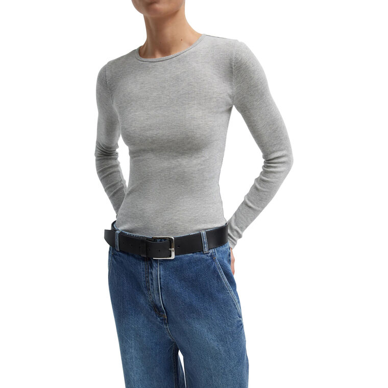TIBI's Circular Ribbed Crewneck Pullover is crafted in Peruvian 2x1 cotton, embodying versatility with a sculptural ribbed knit finish. It is designed to move seamlessly between seasons, worn alone or layered with luxe outerwear.